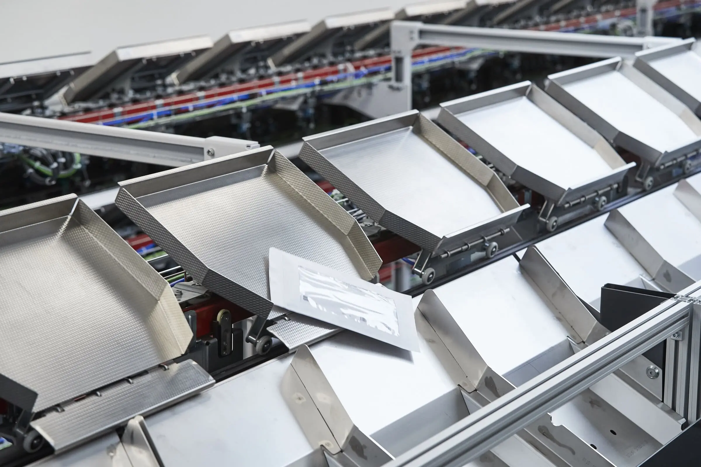 - Automated infeed from packaging machine